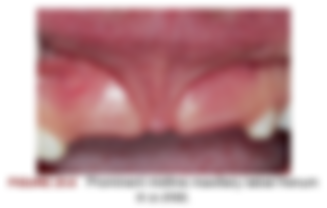 - 唇繫帶位置異常(Malpose labial frenum)→當上顎犬齒即將萌出時切除繫帶