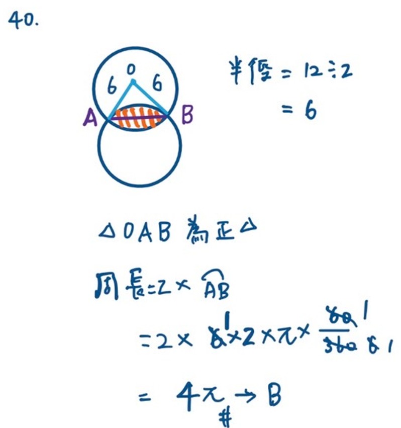 40. 小志將兩個大小相同的光碟片的其中一部份疊合在一起(如圖)。已知
