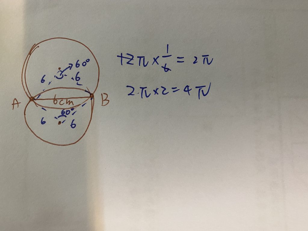 6公分:圓心到A、B各為6公分 正三角形