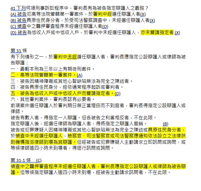 D選項低收入戶和中低收入戶要先聲請(很重要念三遍)才可以指定辯護人