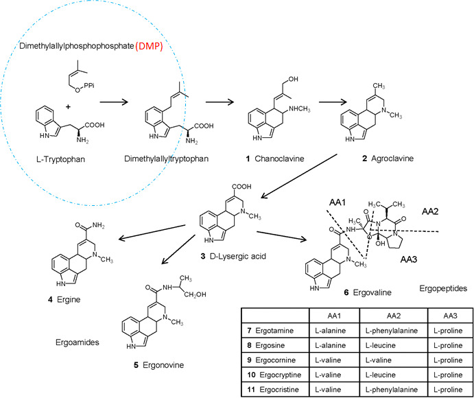 41 生合成ergonovine 有關之前驅物質是: