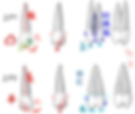 (A)從近心面觀,頰側咬頭與舌側咬頭幾乎等長