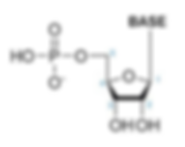41.核苷酸包含有鹼基(Base)、五碳糖(Ribose)與磷酸(Phosphoric acid)。其中,鹼基是接在五碳糖的那個碳上?