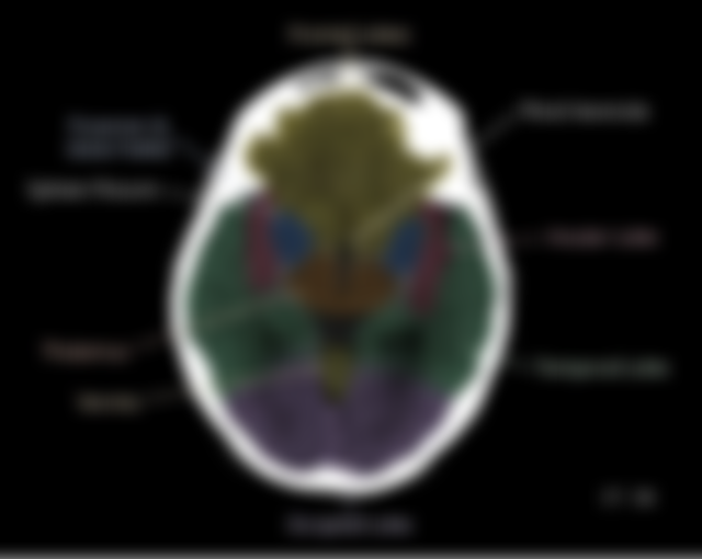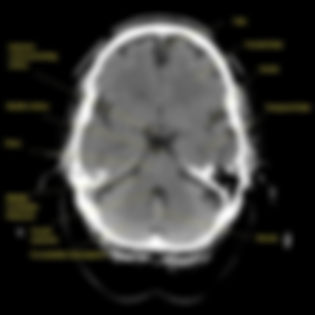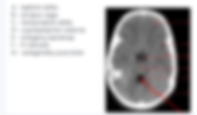 41.腦部電腦斷層掃描影像中,箭號A所指的解剖構造為何?