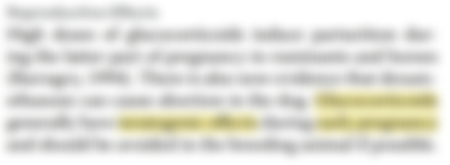 Glucocorticoids generally have teratogenic effects during early pregnancy and should be avoided in the breeding animal if possible. (紅皮)