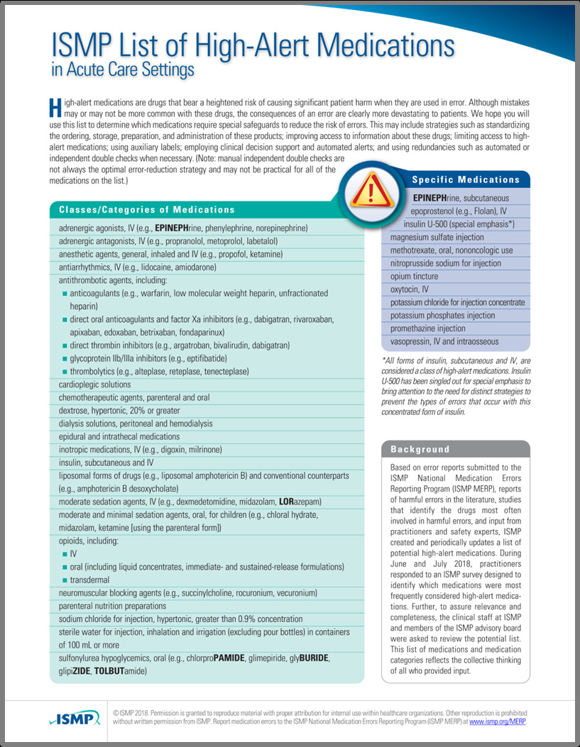14.根據美國Institute for Safe Medication Practices(ISMP)的定義,下列何者不屬於high alert medications?