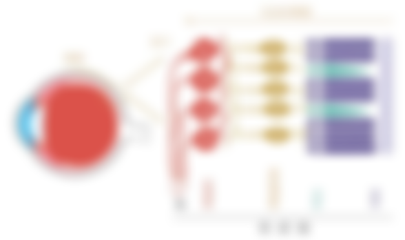 鞏膜⭢脈絡層⭢色素層⭢錐細胞/桿細胞⭢水平細胞⭢雙極細胞⭢無軸突細胞⭢神經節細胞⭢視神經纖維