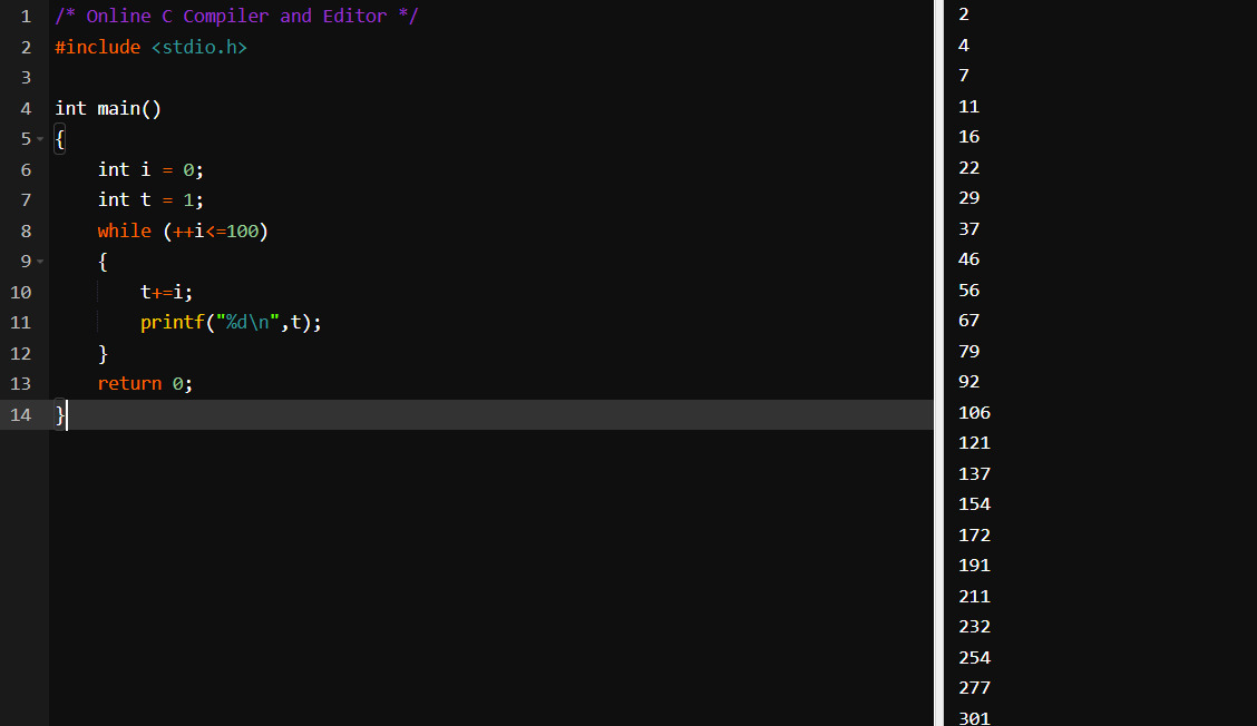 42. 下列何者為 t 值在迴圈結束後之結果?