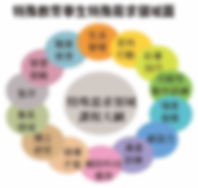 特殊教育學生(安置於不同教育情境中之身心障礙或資賦優異學生)之特殊學習需求,經專業評估後,提供生活管理、社會技巧、學習策略、職業教育、溝通訓練、點字、定向行動、功能性動作訓練、輔助科技應用、創造力、領導才能、情意發展、獨立研究或專長領域等特殊需求課程
