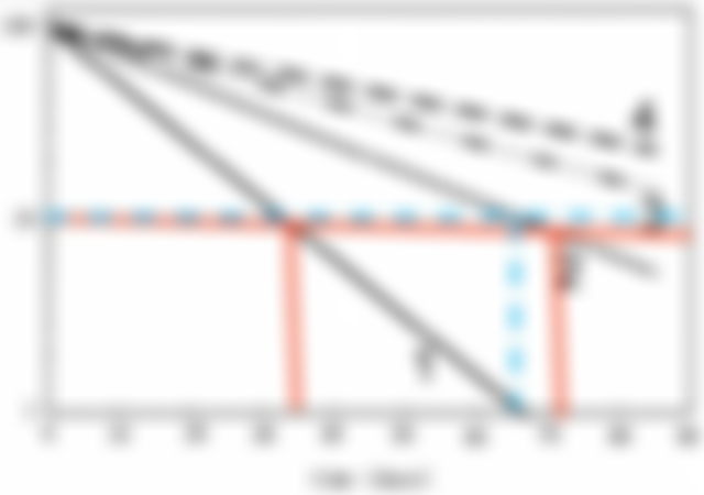 43.下圖為四種不同半衰期核種的衰變曲線,其中1至4的曲線,半衰期為20天的為何?