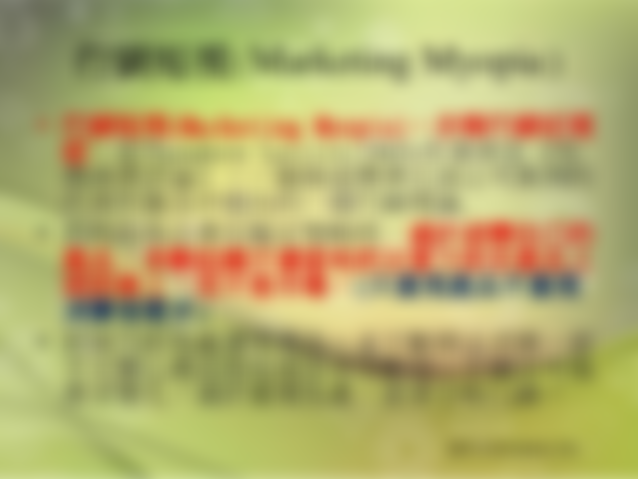行銷短視症(marketing myopia)又稱為行銷近視症==>