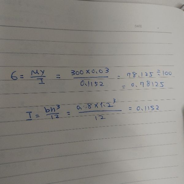 43.有一斷面寬及高為 8 cm x 12 cm 的樑,倘若此斷面受 300N-m 的彎矩,請問中立軸上方 3 cm 處的