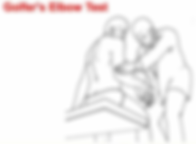 (C)Golfer's elbow測試是病人同時主動做肘伸直、前臂旋前(pronation)和手腕屈曲向橈側偏移,同時抵抗阻