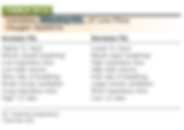 43. 使用simple mask 時,呼吸型態的變化會影響其吸入氧氣濃度(FiO2) ,下列那些狀況會 造成 FiO2 減少?① high tidal volume ② low inspiratory flow ③ fast rate of breathing ④ large minute ventilation ⑤ short inspiratory time ⑥ low I:E ratio