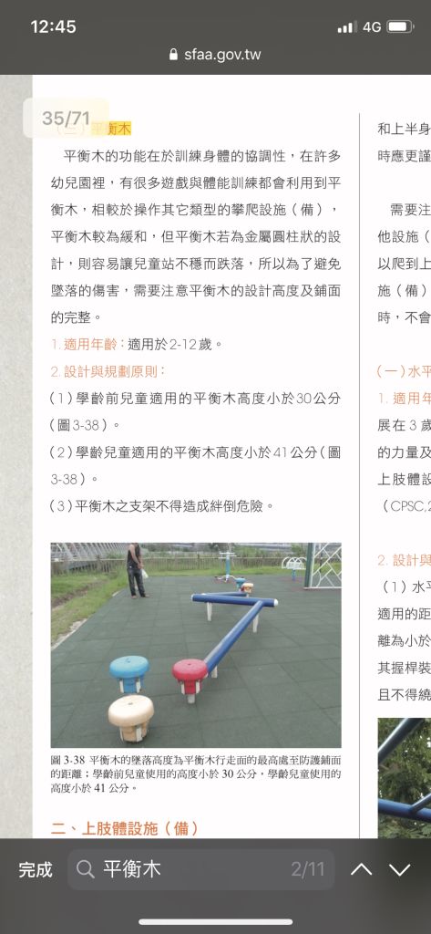 平衡木高度學齡前小於30公分;學齡小於4...