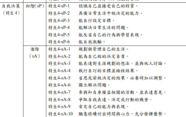 針對身心障礙學生,在生活管理自我決策的學習表現上,是指他們可以達成下列何者?