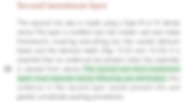 44.關於可撤式局部義齒分模式四層包埋法處理,去蠟後樹脂填壓是介於下列那兩層之間進行?