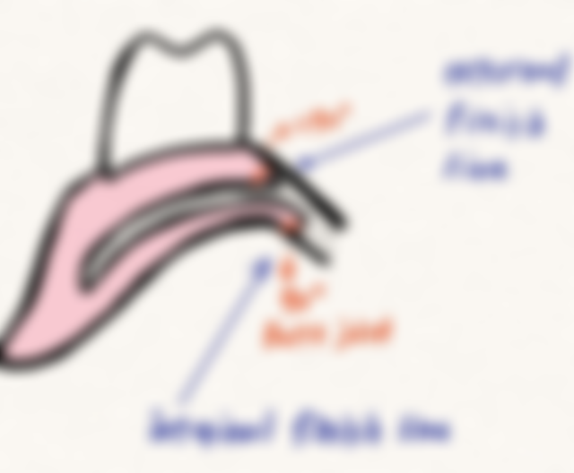 (B)外終接線(external finishing line)在金屬義齒支架製作過程中置放,並於雕刻蠟型時形成