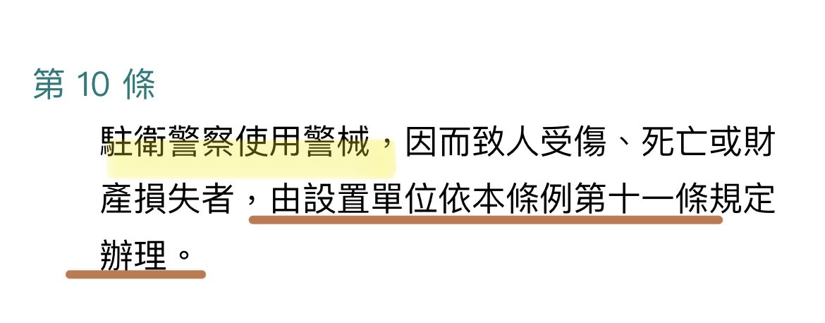 由於駐衛警察使用警械管理辦法是依據「警械使用條例」第十三條第二項規定「訂定」。
