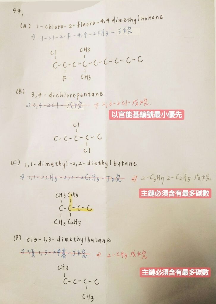 而且取代基的書寫順序要照字母排列的順序,乙基的英文開頭e比甲基的m前面,寫的順序要優先於甲基