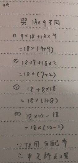 第三步: 選項內容是在考學生是否能夠辨識或理解「乘法對加法或減法的分配律」的概念。(因此乙老師也正確)