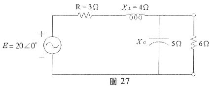 44. 圖27 中 E=20∠0°伏特,跨6Ω電阻器之諾頓等效電路為圖28,計算值(安培)
