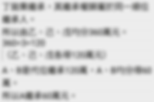45 甲男乙女為夫妻,育有丙、丁、戊三子。丙男與己女已婚,而生有 A、B 二女。丁男與庚女結婚, 生有一子 C。甲男與丙男因車禍雙雙死亡,不知誰先死。丁於繼承開始後,依法拋棄繼承。若依同 時死亡不具備同時存在之法理,甲死亡留下 360 萬元時,A 女可繼承甲男之財產金額為何?