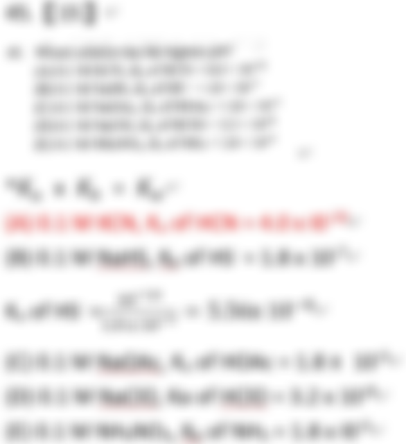 45. Which solution has the highest pH?