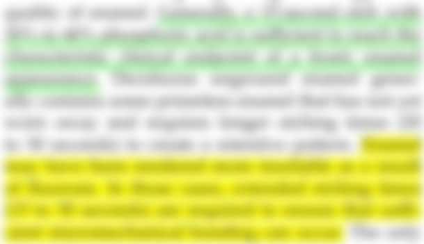 45.一般使用30~40%的磷酸酸蝕牙釉質約15秒,如果遇到氟斑齒(fluorosis),酸蝕方式應該如何調整較適