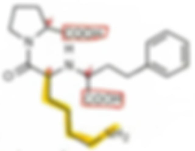 Proline ring:Captopril、Enalapril(製成Maleate,酯解成Enalaprilat)、Lisinopril(水溶性最大;di-Zwitterion)