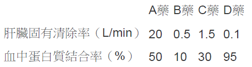 (A)A藥為高抽提率及中血漿蛋白結合率藥品,肝臟清除率受血漿蛋白質結合率改變影響最大