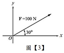 45. 如圖【3】所示,若將F=100N之力分解成水平分力及垂直分力,則其垂直分力應為?(A) 50N向上(B) 50N向下(C) 50N向上(D) 50N向下