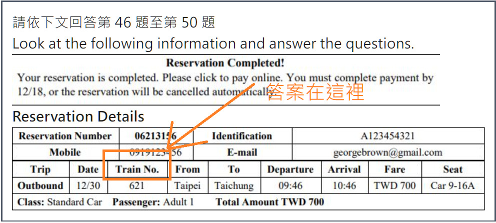 等級:標準車廂 乘客:成人1人 總金額 TWD 700 |
