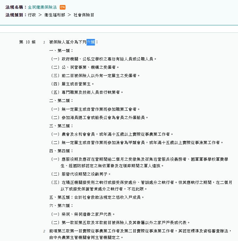 46.依全民健康保險法之規定,被保險人分為幾類?