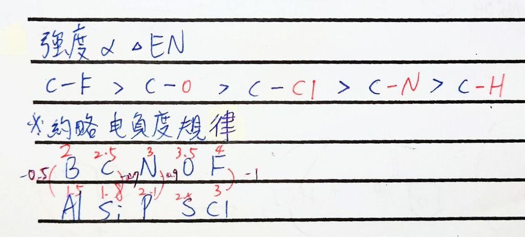 46. 下列各 C-X(X 非為 C)鍵結於紅外線光譜中之吸收強度由強至弱之排列為何?