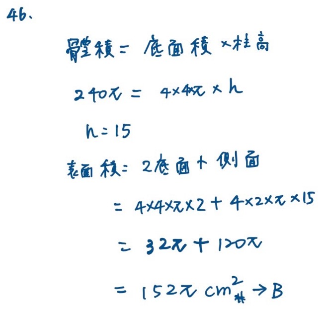 立方公分,已知其兩個全等圓半徑為4公分,請問直圓柱的表面積為何?