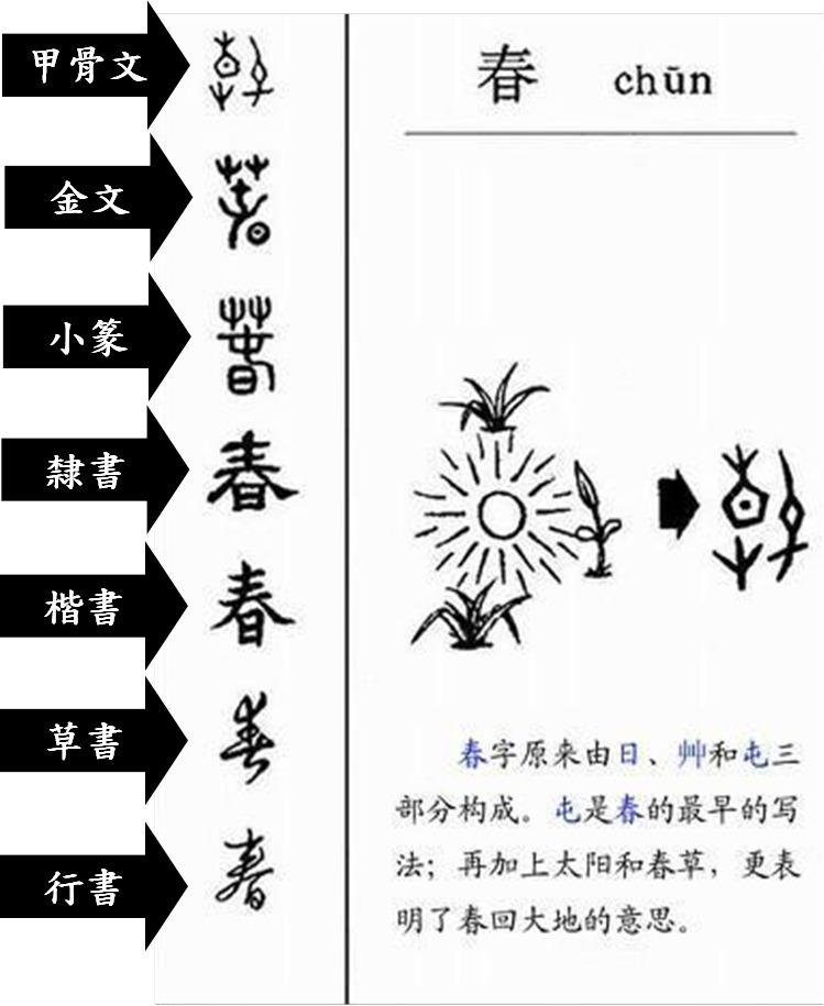 (C)C甲骨文→籀文→鐘鼎文→隸書→楷書
