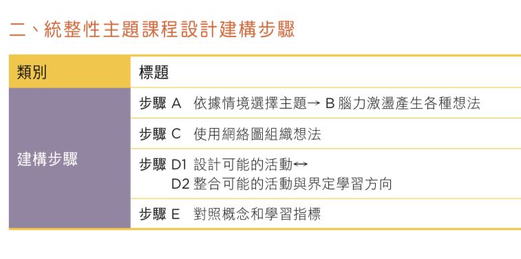 項事宜:甲、設計可能的活動;乙、整合可能的活動和界定學習方向;丙、依據情境選擇