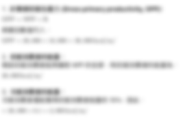 47. 假設一個生態系的凈初級生產力 (Net primary productivity, NPP) 為 20,000 kcal/m²/年, 其中呼吸作用 (respiration, R) 耗能為 10,000 kcal/m²/年。若次級消費者僅能獲得初級消費者的 10%能量,次級消費者的實際能量可達多少?