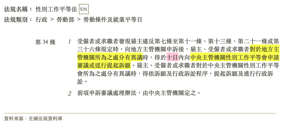 (D)甲男之公司對於地方主管機關所為之處分有異議時,得於 10 日內向中央主管機關性別工作平等會申請審議,不得(或)逕行提起訴願