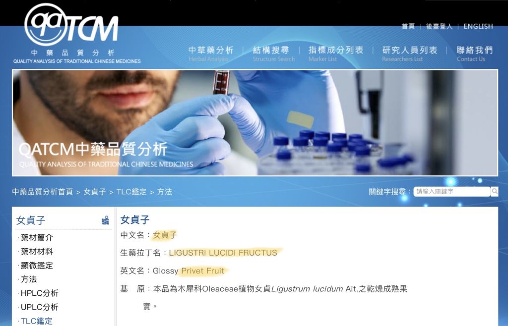(B)Ligustroside --女貞子的配糖體成分,可做為檢驗標準品;女貞子具有滋補肝腎功效