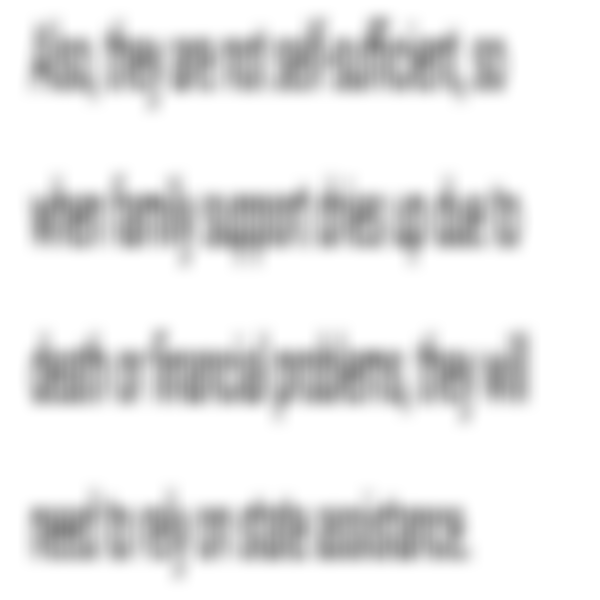 Also, they are not self-sufficient, so when family support dries up due to death or financial problems, they will need to rely on state assistance.