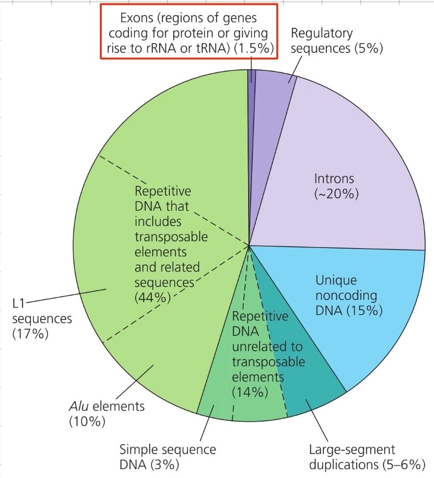 48.人類基因體中負責編碼蛋白質或其他功能RNA的DNA約占_____。