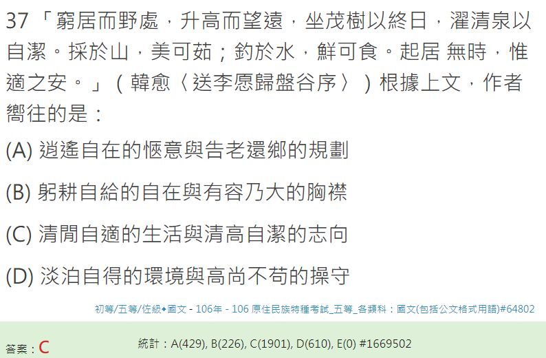 (B)安貧樂道,恬於進趣