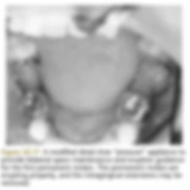 (D)第二乳臼齒提早脫落無法靠製作壓力式活動裝置(pressure-type removable appliance)來維持空間