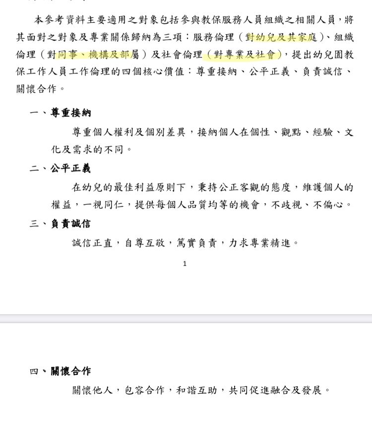 1、服務倫理(幼兒及家庭)