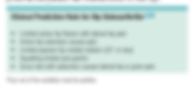 48.50歲髖關節外側疼痛患者,主訴無法蹲踞和跑步,檢查發現主動髖屈曲和被動髖內轉角度受限、髖關節磨刷