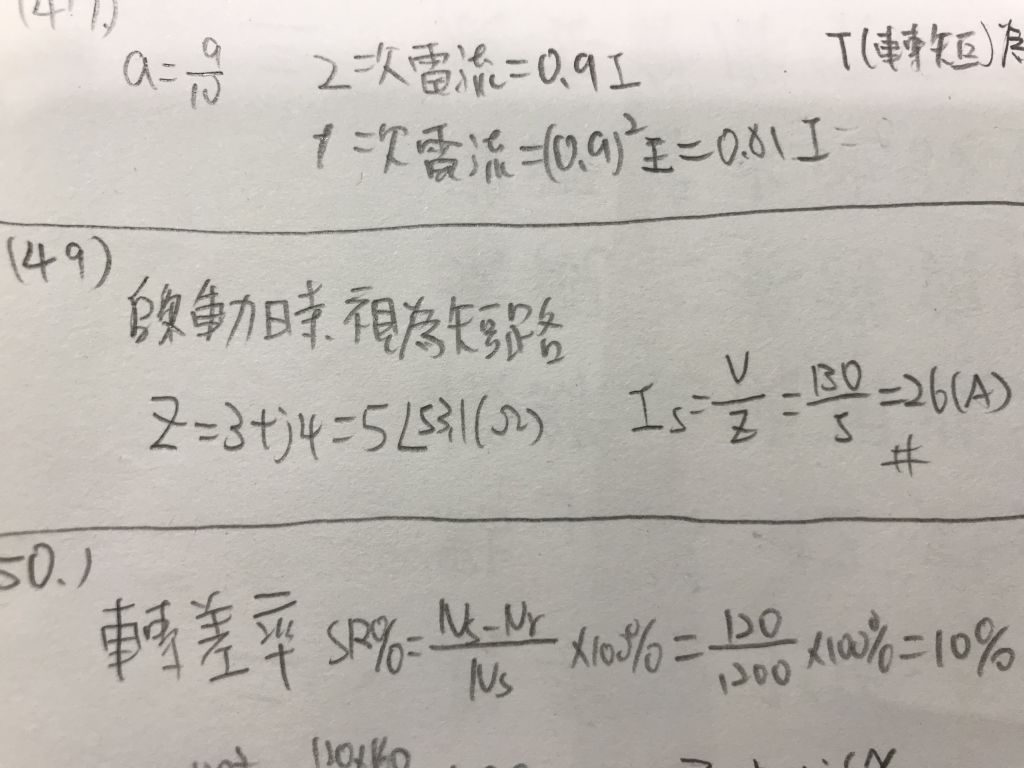 49 則在起動時,轉子每相電流為