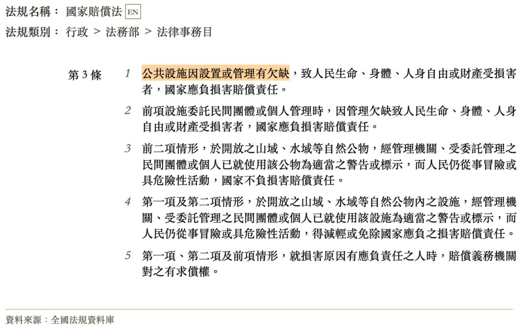 49 下列何種公共設施之設置或管理有欠缺,人民得請求國家賠償?