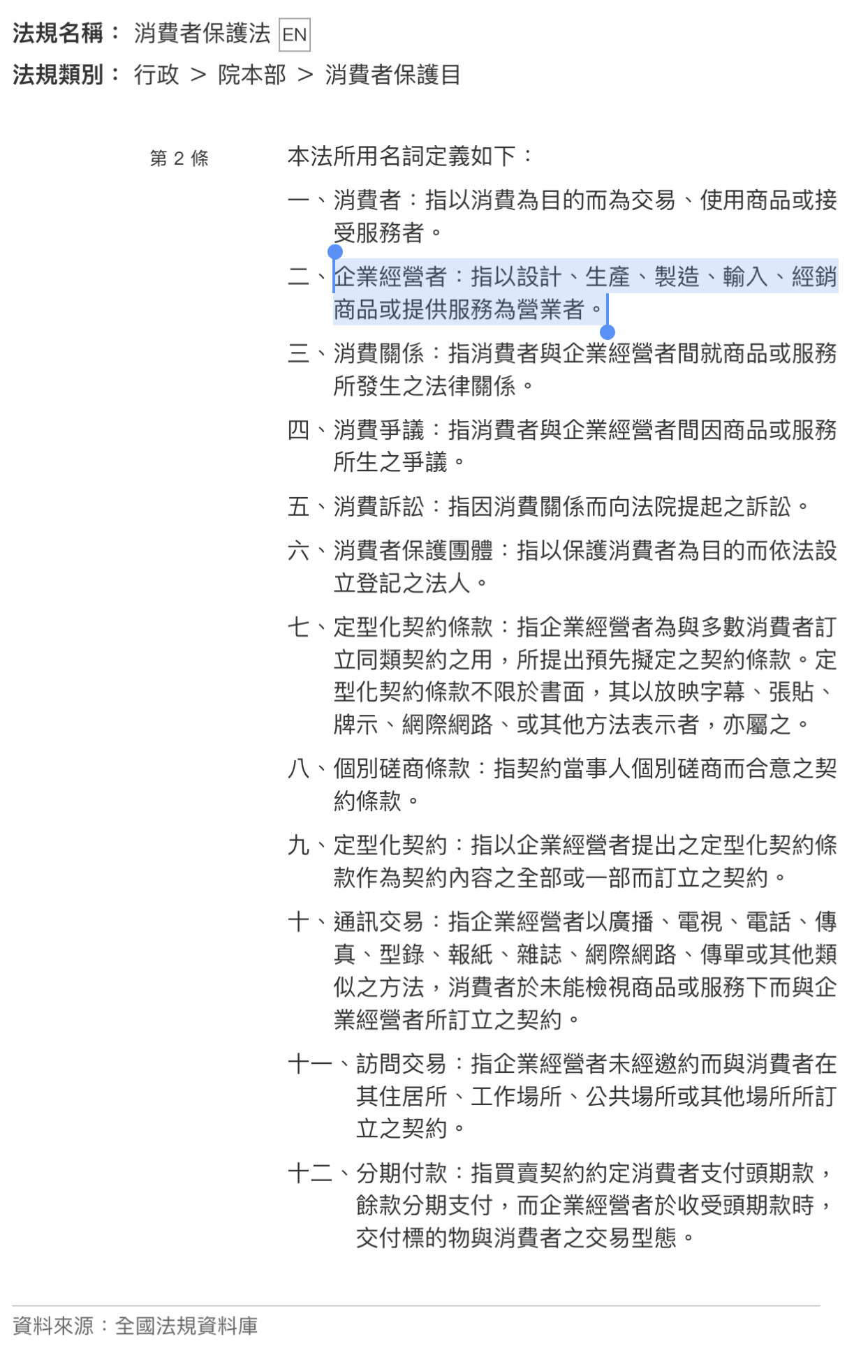 消費者保護法 第2條第2款